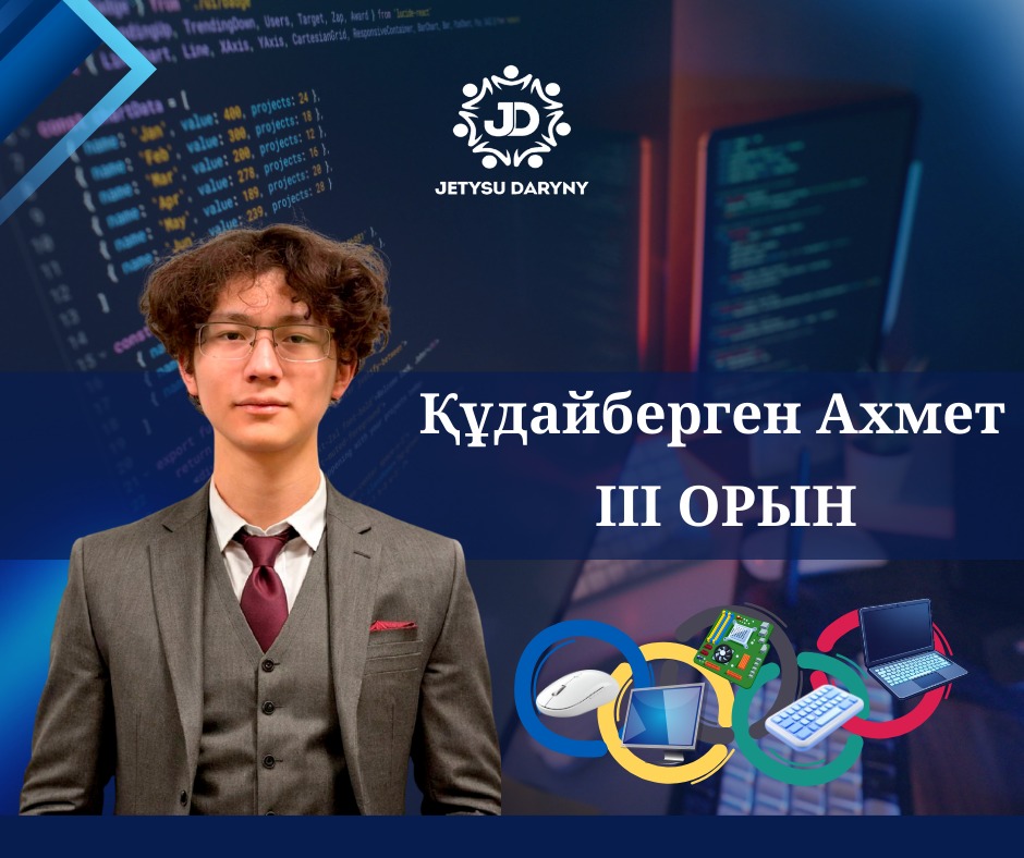 3-е место – Кудайберген Ахмет, ученик 11-го класса специализированной школы-интерната «БИЛИМ-ИННОВАЦИЯ» в Талдыкоргане.